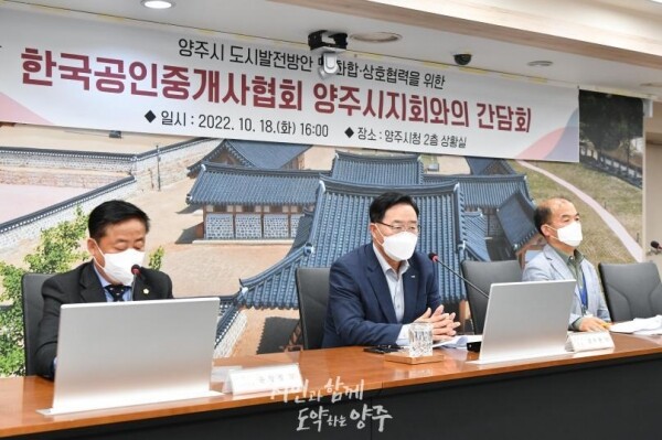 이번 간담회에는 강수현 시장, 윤창철 시의회 의장을 비롯해 전지원 지회장, 권강회·김현수 부지회장, 지역 분회장, 관계 공무원 등이 참석한 가운데 시가 추진 중인 부동산 현안사업에 대해 소개하고 한국공인중개사협회의 건의사항을 자유롭게 청취하는 방식을 진행됐다.