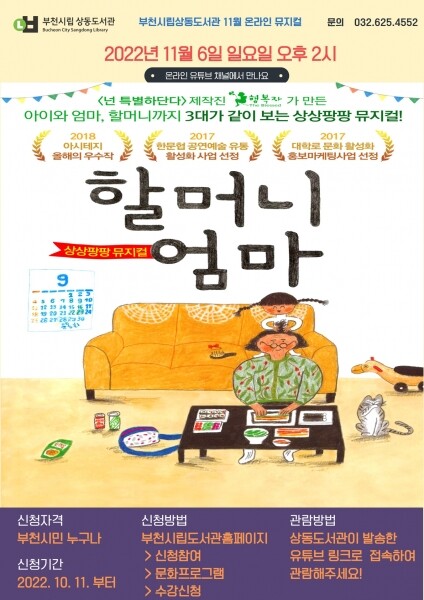늦가을 11월에는 온 가족이 함께 따뜻하게 즐길 수 있는 뮤지컬 공연 ‘할머니 엄마’를 유튜브 라이브를 통해 만나볼 수 있다.