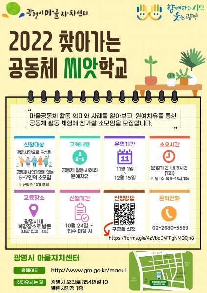 ‘2022 찾아가는 공동체 씨앗학교’는 현재 관내에서 활동 중인 공동체가 예비 진입자와 촘촘하고 든든한 관계망을 형성하며 내년에 신규로 진입할 공동체를 발굴하는 것을 목적으로 추진된다.