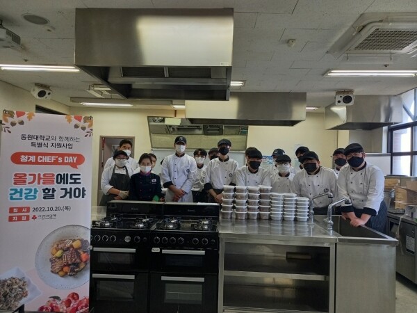 특별식 만들기 봉사에 참여한 동원대학교 호텔조리학과 교수 및 학생들은 작은 재능으로 누군가에게 도움 줄 수 있기에 참여 자체가 큰 의미가 있고 뿌듯하다고 전했다.