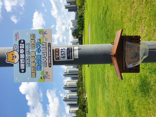 회천4동은 반려동물 1,000만 가구 시대에 발맞춰 배변봉투함을 옥정호수공원, 가온길 근린공원, 선돌공원, 각 1개소와 회암천 자전거도로 도보 양방향 내 각 1개소 총 5곳에 설치했다.