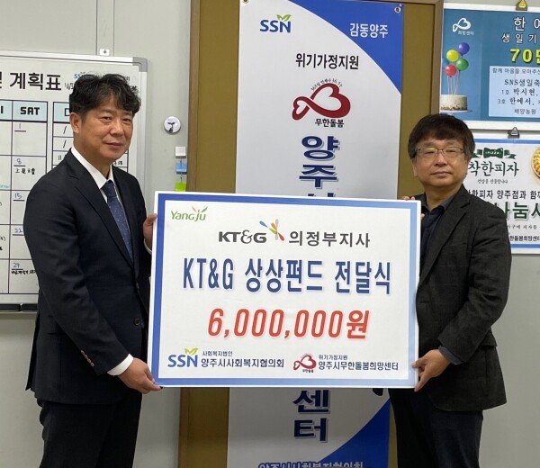 희망센터 이도희센터장은 “5년째 지속적으로 상상펀드기금을 희망센터에 후원해 지역사회 취약가구를 지원해 주는 KT&G 의정부지사에 감사하다”며 감사를 표했다.