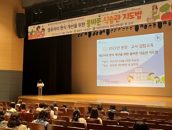 이번 교육은 올바른 식습관 교육을 통해 어린이 급식소 운영이 안정적으로 이루어질 수 있도록 지원하기 위해 실시됐으며 ‘영유아의 편식 개선을 위한 올바른 식습관 지도법’을 주제로 바른 식습관 형성을 위한 원장과 교사의 역할에 대해 교육했다.