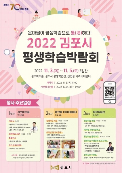 11월 3일 개막식에서는 은여울여성합창단의 축하 공연을 시작으로 이국종 교수의 삶을 채우는 인문학 강연과 평생학습 성과를 공유하는 학습동아리 공연 및 성인문해 학습자들의 시화 작품 특별 전시도 김포아트홀에서 함께 마련된다.