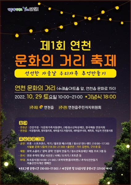 김관섭 연천읍장은 “연천읍의 중심 거리인 문화로에서 새롭게 추진하는 축제로서 주민을 중심으로 모두가 하나되어 선선한 가을날 다양한 체험을 통해 가족과의 즐거운 추억 한 페이지를 만들기를 바란다”고 말했다