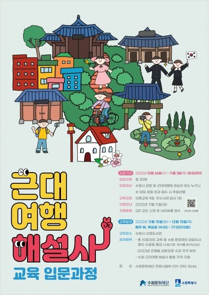 김현광 대표이사는 “행궁동부터 수원역까지 이어지는 수원 근대여행 골목길 코스를 함께 이끌어갈 해설사 양성 입문 과정 교육은 지역 및 주민 기반의 지속가능한 관광 발전의 모델을 만들고 수원시 근대여행의 가능성을 보여줄 수 있는 사업이다”며 “평소 수원시 관광과 수원시 근대 자원에 관심 있는 분들의 많은 관심과 참여를 부탁드린다”고 말했다.