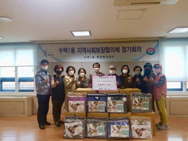 이날 지원한 온열매트는 수택1동 지역사회보장협의체에서 추진하는 동 특화사업으로 어르신들의 따뜻한 겨울나기를 위해 추진됐으며 협의체 위원들이 직접 방문해 온열매트를 설치하고 어르신들에게 사용법도 상세히 설명해드렸다.