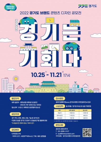 작품 접수는 2022 경기도 브랜드 콘텐츠 디자인 공모전 공식 누리집에서 진행된다.