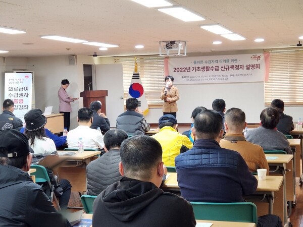 2022년도 기초생활보장 신규책정자·의료급여 수급권자 약 120명을 대상으로 복잡한 제도에 대해 알기 쉽게 설명하고 수급자의 권리, 반드시 지켜할 의무 역시 빠짐없이 안내할 계획이라고 전했다.