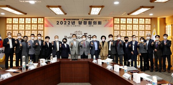 김찬진 동구청장은 “바쁘신 의정활동 중에도 당정협의회에 흔쾌히 참석해 주셔서 감사드린다”며 “쇠퇴하고 있는 동구의 재도약을 위해 풀어야 할 많은 현안사업이 차질없이 추진되도록 적극적인 지원을 부탁드린다”고 말했다.