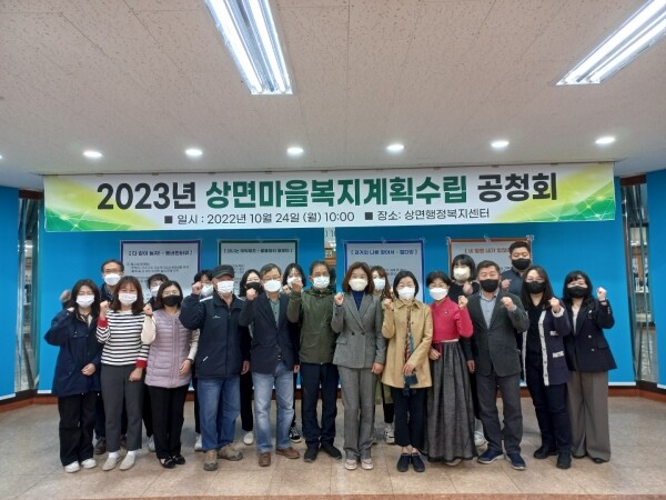 또한, 7월부터 9월까지 총 3차례에 걸쳐 워크숍을 진행하면서 설문조사결과를 바탕으로 지역현황 및 욕구를 분석하고 다양한 지역 내 자원을 활용해 상면의 현안문제들에 대한 해결방안 모색과 마을복지공동체 역할을 강화하기 위한 세부사업들을 도출했고 이번 공청회를 통해 수렴한 다양한 주민들의 의견을 반영해 2023년도 상면마을복지계획을 추진해 갈 계획이라고 전했다.