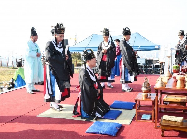 문학산 정상에서 초헌관에는 고춘식 미추홀구 부구청장, 아헌관은 배상록 미추홀구 의회 의장, 종헌관은 고상훈 인천향교 수석장의가 맡아 의례가 진행됐다.