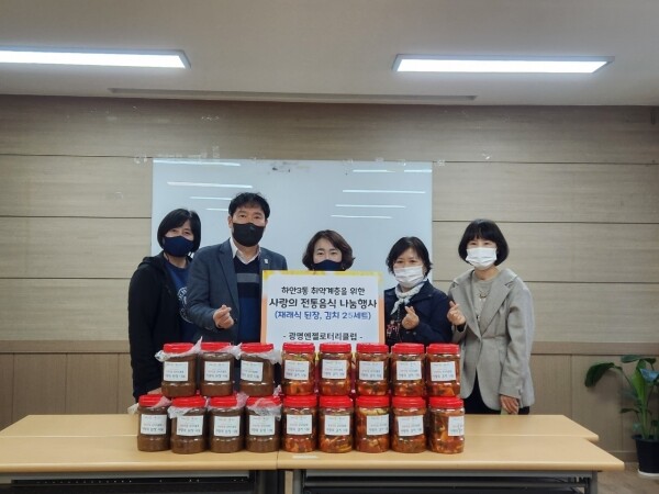 이번 행사에서는 광명엔젤로터리클럽 회원들이 관내 독거노인, 장애인 등 취약계층 25가구에 손수 담근 우리 전통음식인 재래식 된장과 섞박지 김치세트를 전달했다.