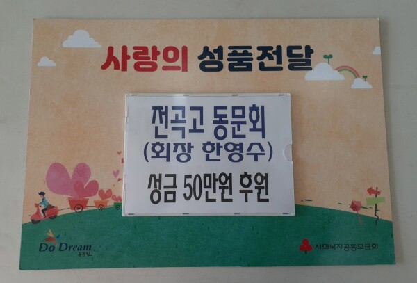 전곡고 동문회는 회원 20명으로 구성되어 매년 연말과 명절 때마다 어려운 이웃들을 위한 성품을 기부하는 등 꾸준한 나눔을 실천해 더불어 살아가는 지역사회 만들기에 귀감이 되고 있다.