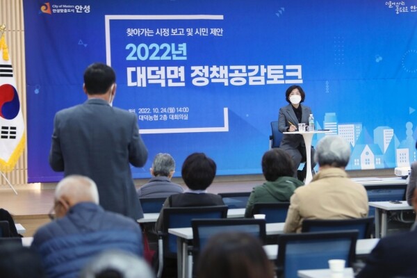이날 개최된 정책공감토크는 대덕면 주민자치센터 프로그램 회원들의 식전공연으로 시작해 민선 8기 시정 운영방안과 2023년 8대 공약사업, 102개 중점사업에 대한 김보라 안성시장의 브리핑이 있었다.