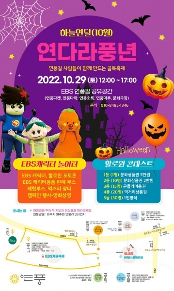 EBS에서 파주시 어린이 가족을 모집해 부모님과 함께하는 요리교실 농산물 판매부스 어린이 종이접기 교실 어린이 딱지치기 대회 가을 피크닉을 운영하며 EBS캐릭터 퍼레이드가 연풍경원에서 시작해 EBS연풍길 골목으로 이어진다.