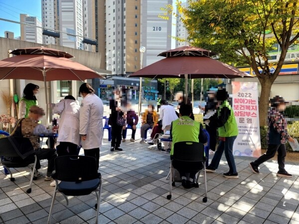 찾아가는 보건복지상담부스 운영 사업은 공공보건복지서비스에 대한 정보 접근 및 문의가 여의치 않아 맞춤형서비스를 제공받지 못하고 지속적인 어려움을 겪고 있는 위기가구를 현장에서 상담·발굴하기 위한 민·관 협력 사업이다.