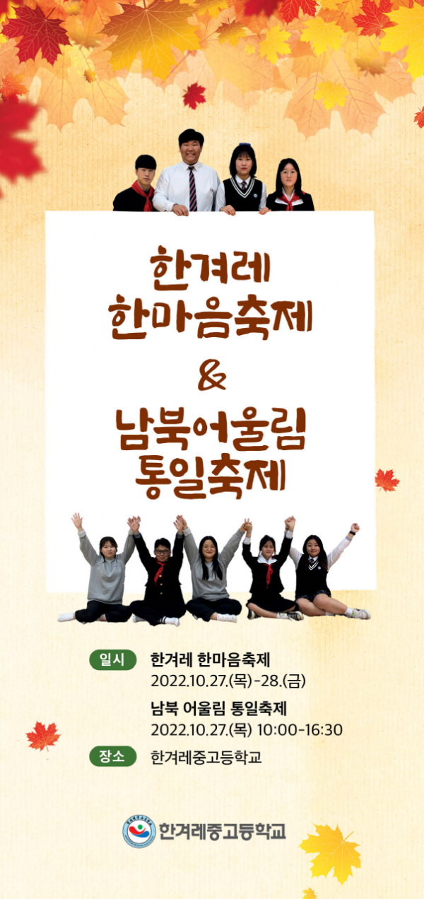 안성시 관계자는 “한겨레학교 학생들과 선생님들이 평범한 일상을 회복하기 위해 힘든 일도 마다하지 않고 서로 배려하며 준비한 소중한 시간인 만큼, 이번 축제를 통해 지역 주민과 관내 학생들이 화합의 소중함을 깨닫고 평화 통일에 대해 더욱 깊은 관심을 가지게 되길 바란다”고 전했다.