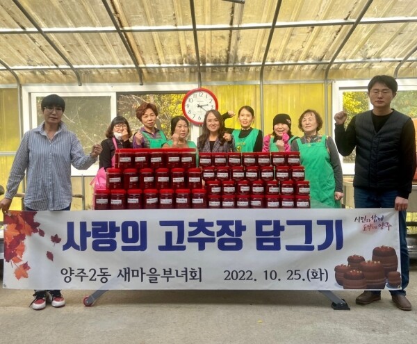 송미애 양주2동장은 “귀한 시간을 내어 지역사회 어려운 이웃을 위해 애써주시는 새마을 부녀회원들에게 진심으로 감사하다”며 “소외된 이웃들에게 희망과 사랑을 전하는 봉사활동에 지원을 아끼지 않겠다”고 말했다.