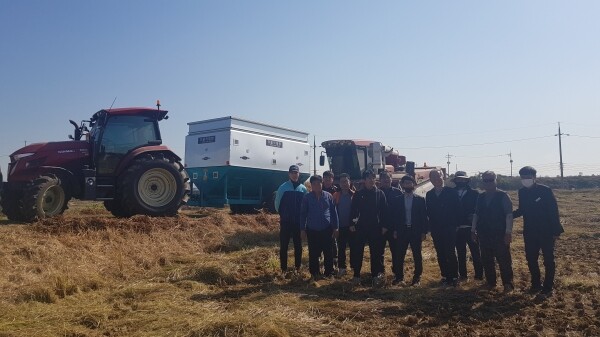 오성면 공동답은 2,300평의 규모로 농업경영인회에서 못자리 설치, 물관리, 모내기, 병해충 방제, 수확 등 직접 운영 관리하고 있으며 이날 약 6,000㎏의 벼를 수확했다.
