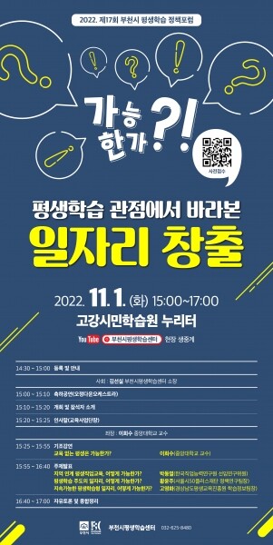 이번 포럼은 고강시민학습원에서 진행되며 유튜브 채널 ‘부천시평생학습센터’를 통해서도 참여할 수 있다.