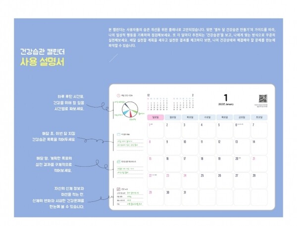 또 달력 상단의 QR코드를 통해 건강습관 콘텐츠를 영상으로 볼 수 있게 했다.