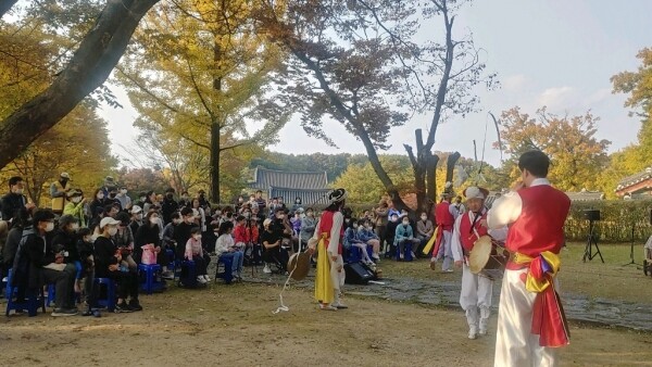 이날 행사는 가을의 반구정을 무대로 마임 무대 퓨전 타악 공연이 펼쳐져 가족이나 연인, 친구 단위의 관광객들이 즐거운 시간을 보냈다.
