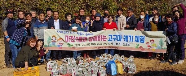 이날 금사면 및 마천1동 주민자치위원회 위원들을 포함해 금사면장, 여주시의원 등 40여명이 인사를 나누고 고구마 캐기 체험에 참여했다.