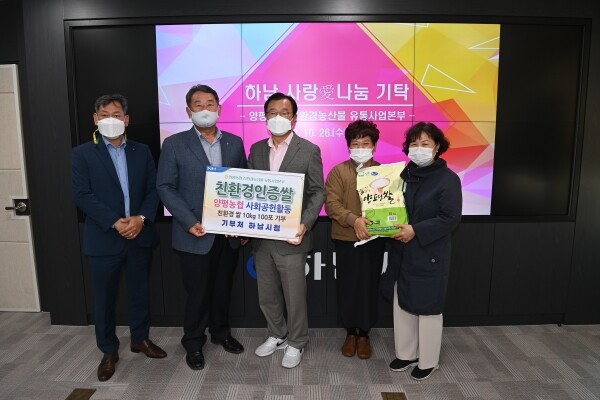 이날 기탁식에는 이현재 하남시장을 비롯해 양평농협 친환경농산물 유통사업본부 한현수 조합장, 안용만 본부장, 강태구 팀장이 참석했다.