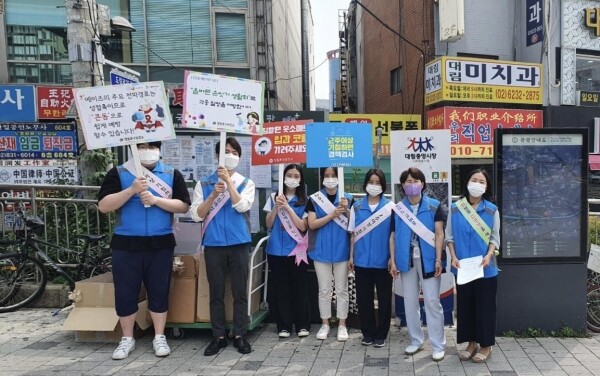 구는 피켓, 어깨띠 등을 활용한 캠페인을 통해 ‘2주 이상 기침하면 결핵 검진’이라는 메시지를 전달한다.