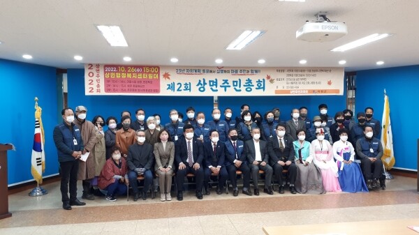 2023년도 주민자치 사업의 우선순위를 결정하기 위해 마련된 이번 총회는 상면 주민자치회장의 개회선언을 시작으로 상면 주민자치회 일반현황, 2022년도 주민자치활동 경과보고 주민자치회 운영계획 설명, 분과별 자치계획안 발표 및 개표결과 발표순으로 진행됐다.