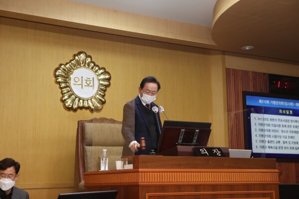 한편 제310회 가평군의회 폐회에 따른 제6차 본회의 안건 의결에 앞서 양재성 의원은 의회와 집행부의 실질적인 소통을 통한 민주적인 자치행정을 실현하는데 함께 힘을 모아 줄 것을 강조하는 5분 자유 발언을 했다.