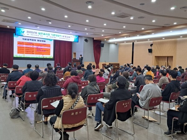 교육에서는 식품위생법 해설 올바른 식중독 예방 및 관리 노무관리 및 고객친절서비스의 중요성 등 음식점 운영 전반에 대한 강의가 진행됐다.
