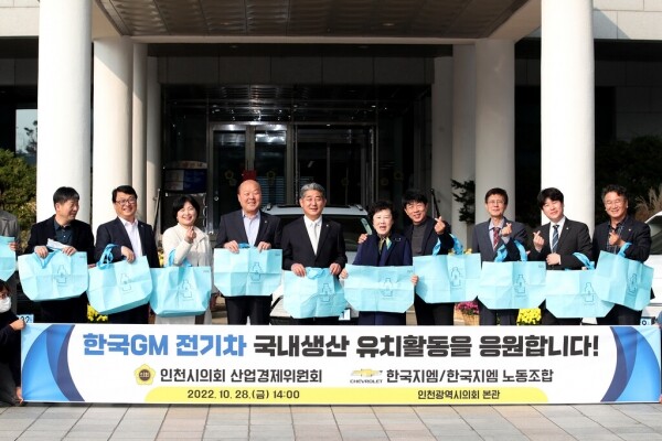 인천시의회 산업경제위원회는 28일 시의회 본관에서 정해권 위원장 등 산업경제위원회 의원들과 부평구 지역구인 박종혁 인천시의회 2부의장 및 유경희 의원, 한국지엠 관계자 등이 참석한 가운데 ‘한국지엠 전기차 국내 생산 유치 활동 응원 캠페인’을 개최했다.