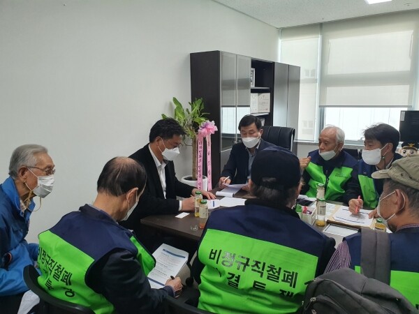 이어 참석자들은 1일 8시간 근무시간 보장 명절휴일 유급처리 당직실 환경 정비 등 근무 여건 개선을 요청했다.