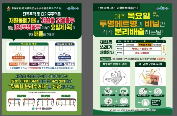 한편 재활용품 전용봉투 배부 대상이 아닌 원룸, 다세대 주택 등은 동 주민센터에서 맞춤형 재활용품 분리수거대를 신청해 설치·사용 할 수 있다.