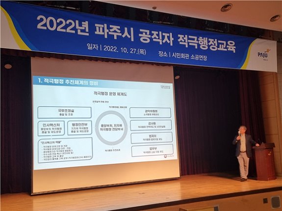 이어 앞으로 추진되는 적극행정의 방향과 관련 사항을 설명하고 공직사회의 전반적인 인식개선의 필요성을 알리며 강의를 마무리했다.