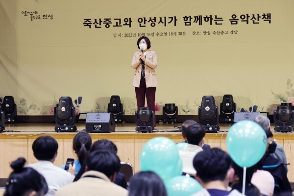 시는 지난 2021년부터 문화소외지역을 중심으로 찾아가는 콘서트 ‘안성 음악산책’을 추진하고 있는데, 10월에는 도농복합도시 안성의 대표적인 농촌지역 죽산면에 위치한 죽산중·고등학교를 찾아 학생들과 학부모, 지역주민들을 맞이했다.