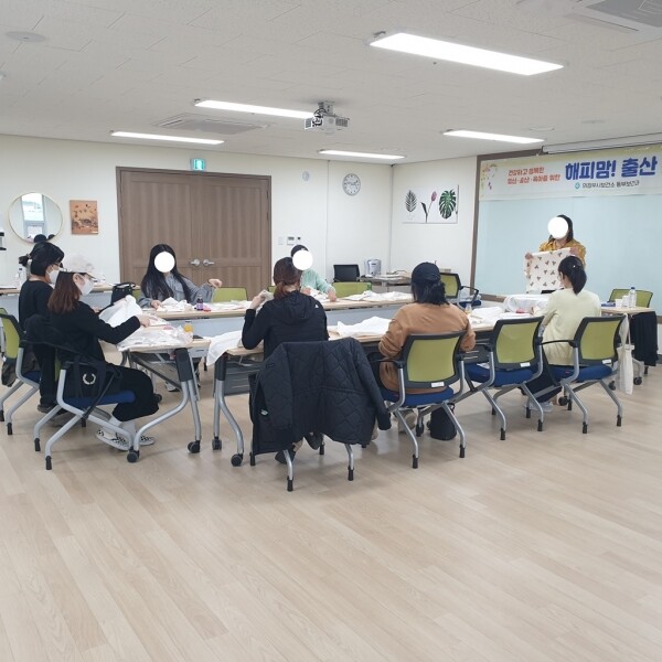10월 26일 마지막으로 진행된 4회차 아기이불 만들기 수업은 임산부들이 내 손으로 애착이불을 직접 만들며 아기를 위한 선물을 준비하는 의미 있는 시간이었다.