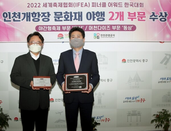 야간형 축제 부문은 인천개항장 문화지구의 역사성을 살려 문화재 야간개방 경관조명 및 거리조명 문화재 드론 라이트쇼 등 다양한 문화재 연계 야간문화 향유 프로그램을 선보인 점을 인정받아 ‘은상’을 수상했다.