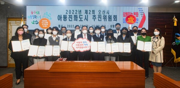 이날 추진위원회에서는 신규 위원 위촉장 수여와 오산시 아동친화도시 4개년 계획에 대한 추진 경과 및 2022년 아동권리 인식도 조사 착수에 대한 보고를 진행했다.