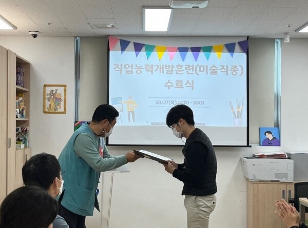 남양주시북부장애인복지관 공상길 관장은 “처음 개강할 때와 같이 6명의 훈련생 모두 훈련을 수료하고 자격증을 취득할 수 있게 돼 기쁘다”며 “이번 훈련이 끝이 아니라 훈련생들이 심화 실습을 통해 화가로서 더욱 전문성을 갖고 앞으로 나아갈 수 있도록 계속 지원해 나가겠다”고 전했다.