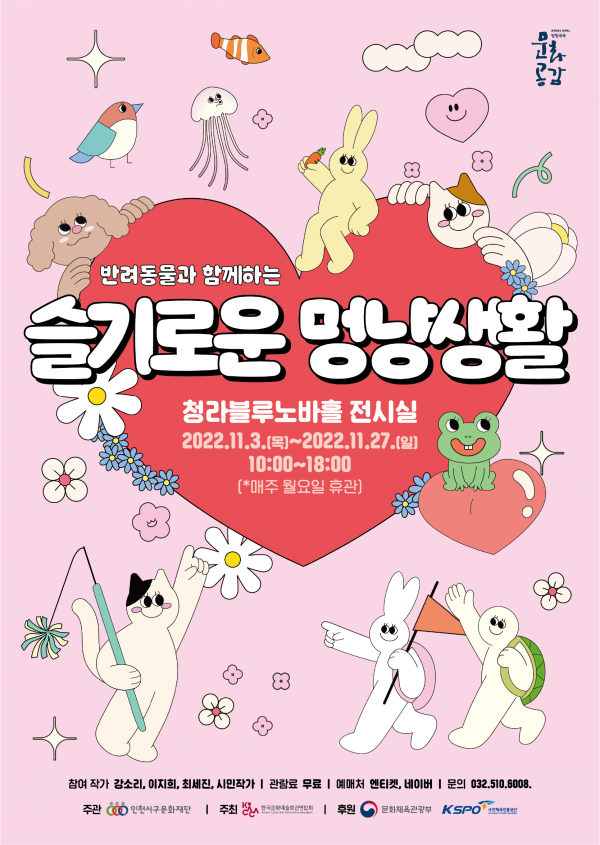 서구문화재단이 오는 3일부터 ‘서구시각 프로젝트, 슬기로운 멍냥생활’ 전시를 청라블루노바홀에서 개최한다고 밝혔다.