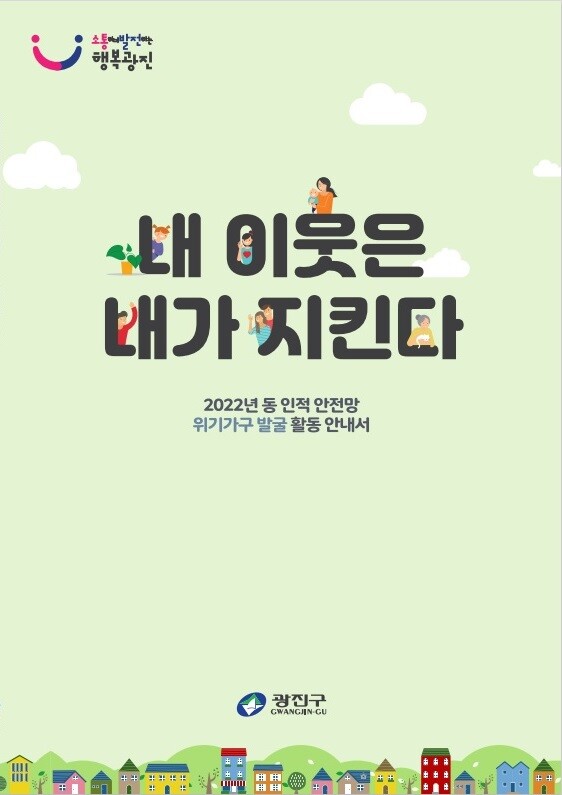 김경호 광진구청장은 “이번 활동 안내서가 동 인적 안전망 구성원들의 복지사각지대 위기가구 발굴 활동에 실질적인 도움이 되기를 바란다”며 “앞으로도 지역의 사회인적 안전망 강화와 촘촘한 복지 체계 구축을 위해 다양한 정책을 추진하며 지원을 아끼지 않을 것”이라고 말했다.