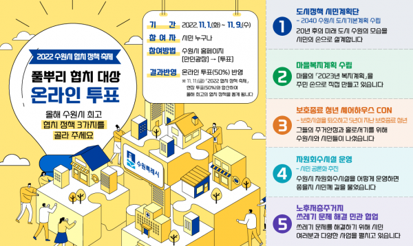 투표는 수원시 홈페이지 ‘수원만민광장→투표’에서 할 수 있다.