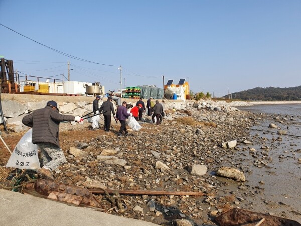 ?이번 환경 정화 활동에는 교동면 노인회 회원 40여명이 참여해 죽산포, 빈장포 등 해안가와 나들길 주변의 해안쓰레기를 집중 수거했다.