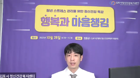 김포시정신건강복지센터는 지난 28일 청년 정신건강 특강 ‘행복과 마음챙김’을 주제로 비대면 온라인 특강을 진행했다.
