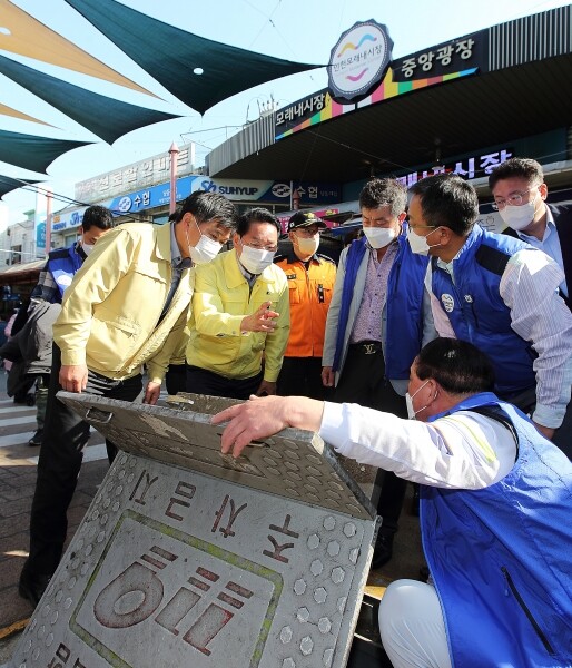 박 구청장은 이날 화재 발생 시 초기 대응에 필요한 소화전을 직접 확인하고 점포 내 설치된 화재 알림 시설과 분전함을 점검했다.