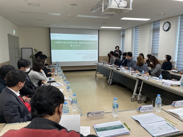 이번 중간보고회에는 남양주시 관계 공무원 및 지역사회보장협의체, 사회복지시설, 통합돌봄 네트워크, 희망케어센터 등 통합돌봄 관련 관계자들이 참석했으며 용역 수행기관인 이화여자대학교 교수이자 現 중앙사회서비스원 조상미 원장의 발표로 진행됐다.
