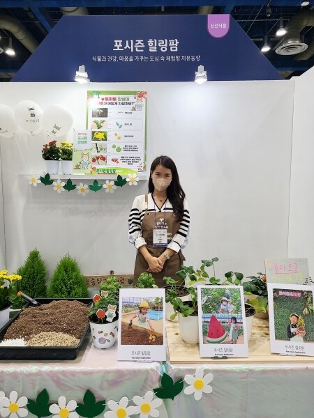 권선구에서 포시즌힐링팜을 운영하는 이희수 씨는 코엑스 행사장에 마련된 ‘수원시 홍보관’에서 도심 속 체험형 치유농장을 소개하고 방울 토마토 키트 등 농산물을 홍보한다.